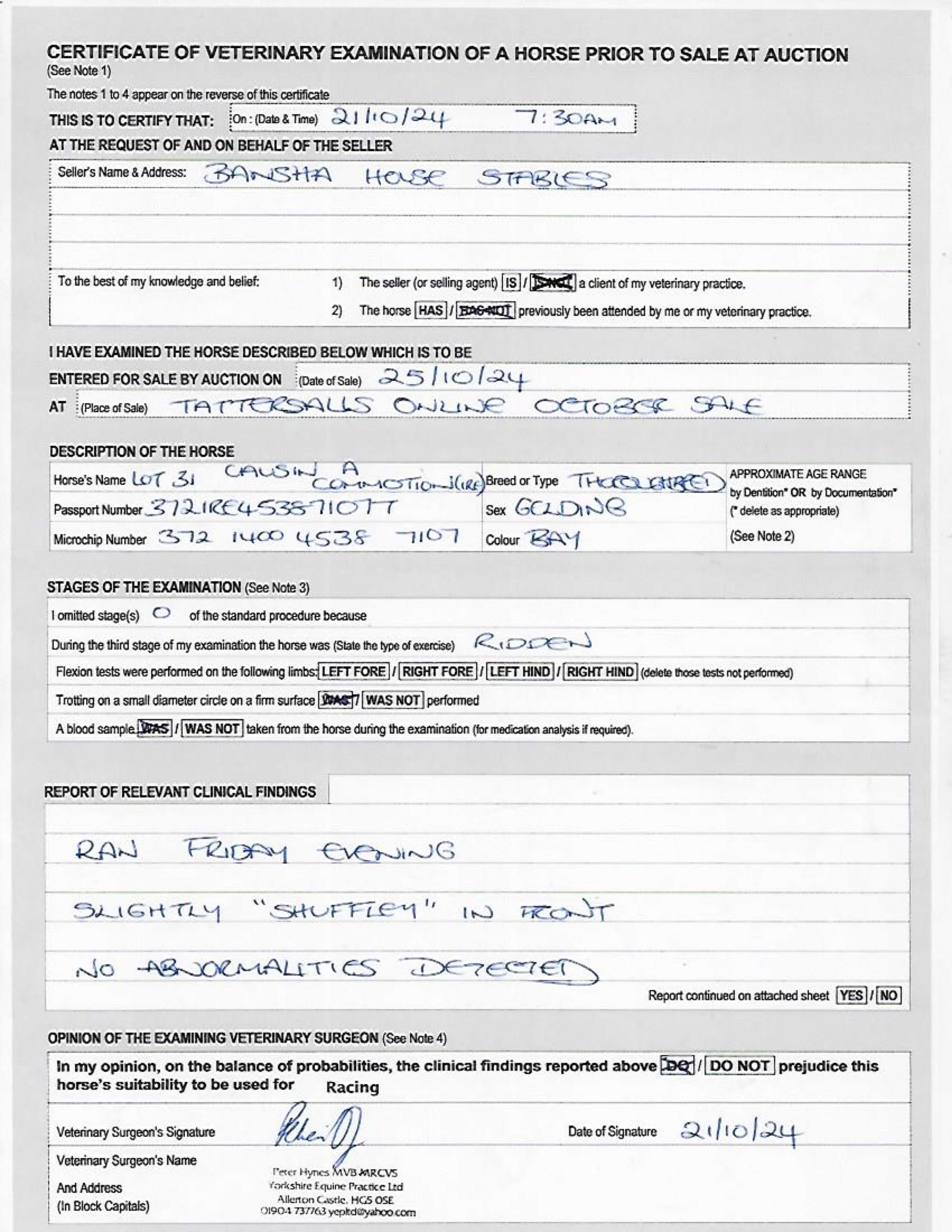 Consignor: Bansha House Stables