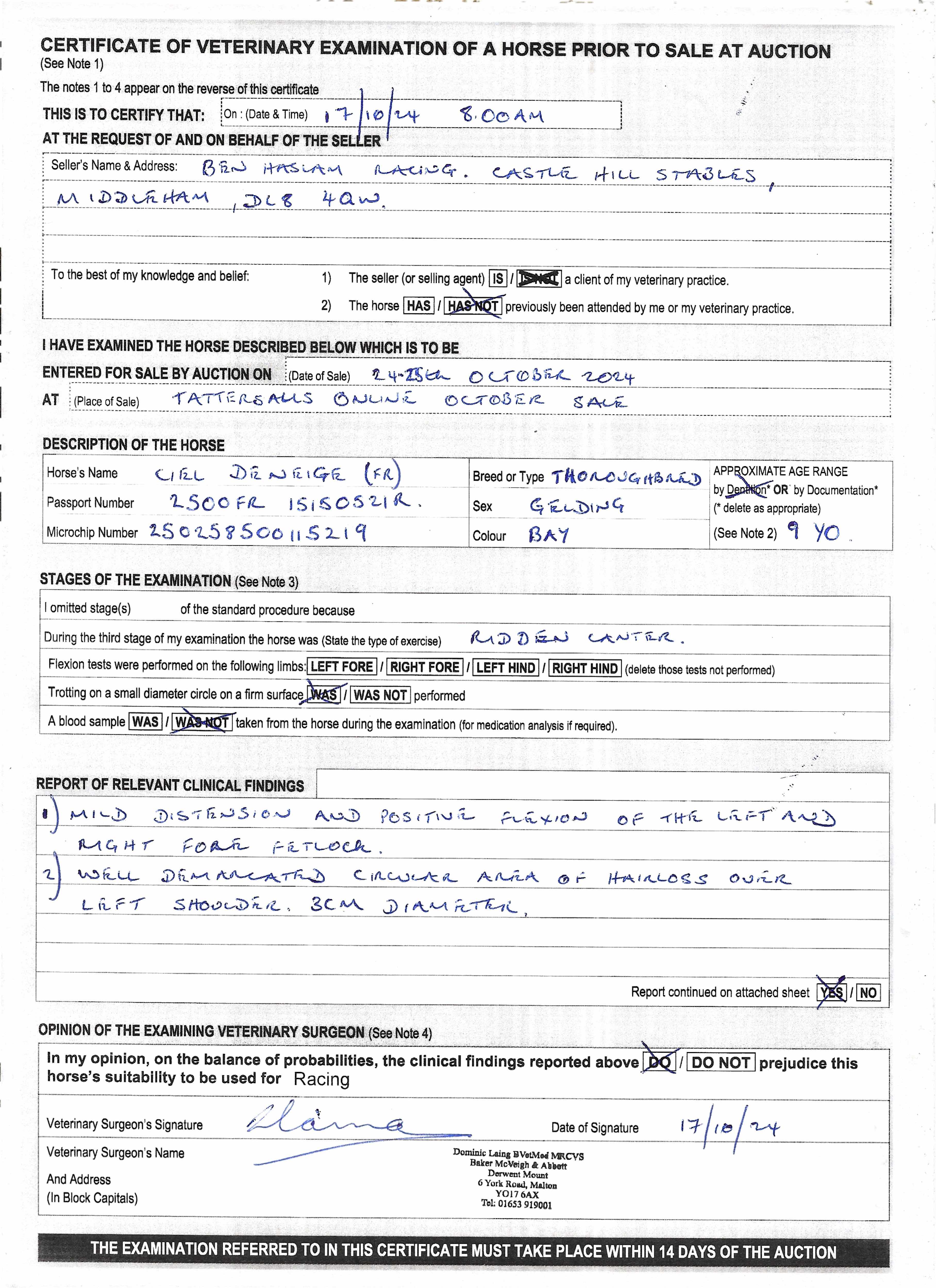 For time sensitive requests please call Tattersalls on +44(0)1638665931