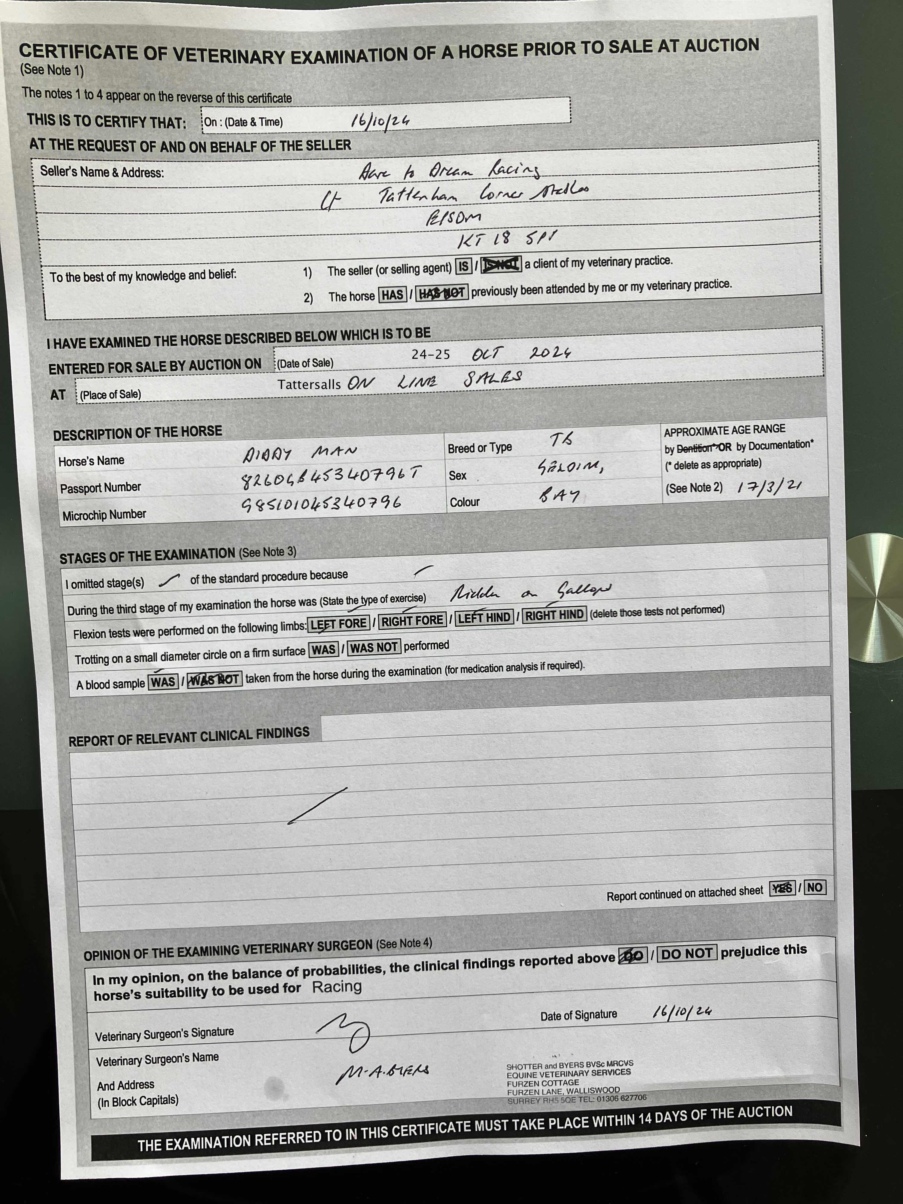 For time sensitive requests please call Tattersalls on +44(0)1638665931