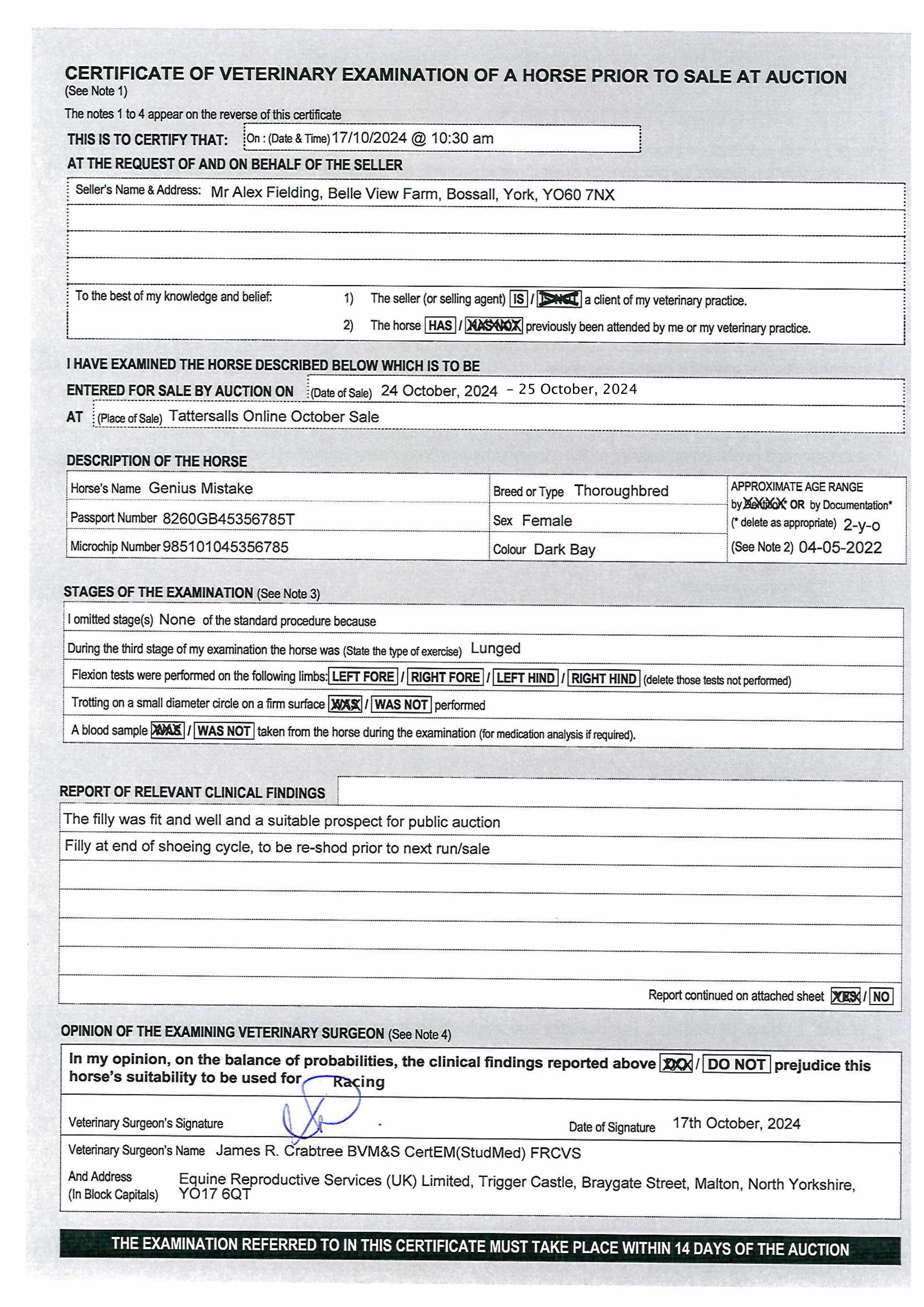 Consignor: Mr Alex Fielding