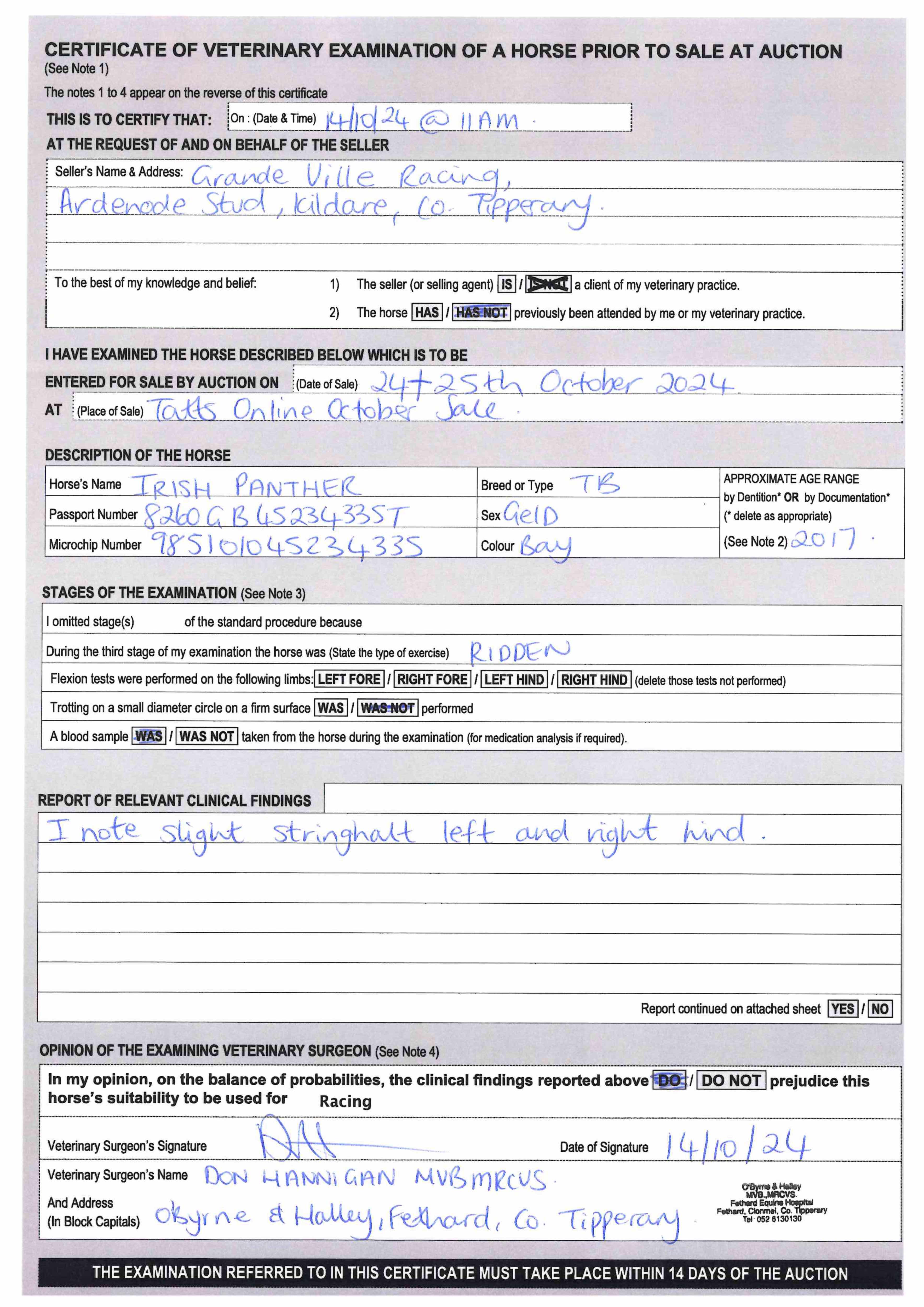 Consignor: Killeens Stables, Ireland (E. O'Grady)