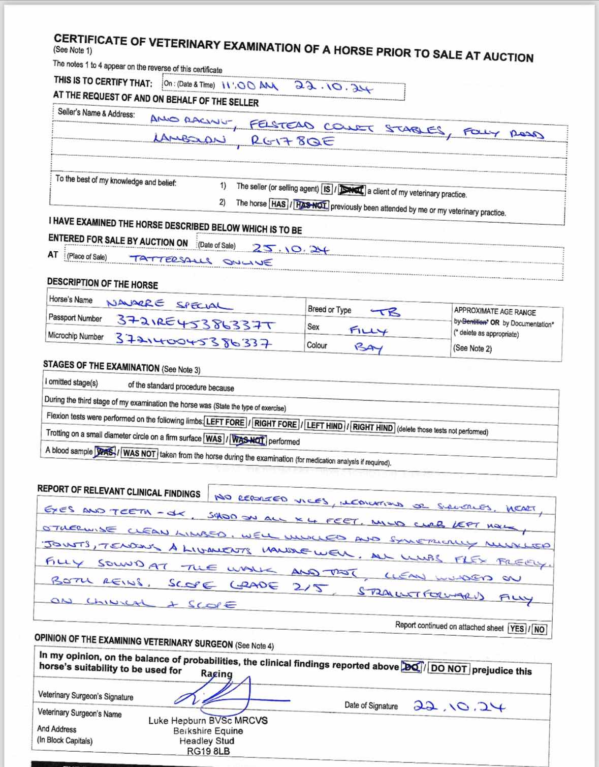 Vendor's Notes: B.F. by Inns of Court (IRE) x News Desk (GB)