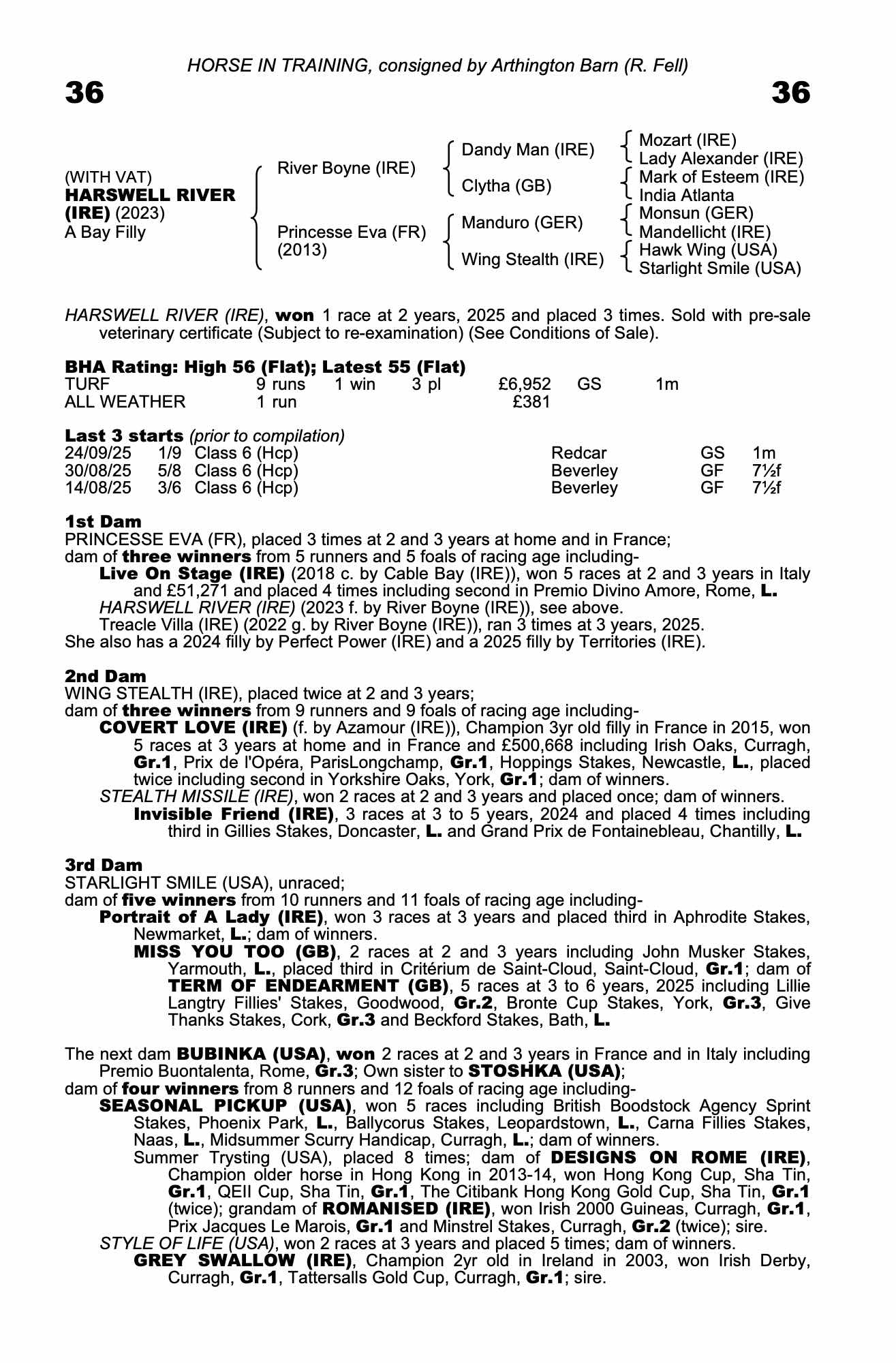 Tuesday 21 October:  Has run since publication of catalogue. 20/10/25 - finished 8th of 9 in 1m (Class 5) Handicap at Pontefract.