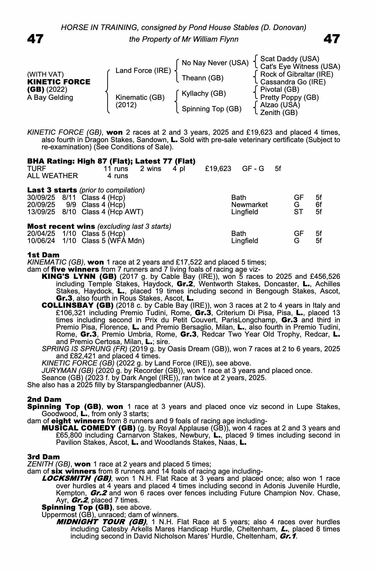 Vendor's Notes: Decent sprinter, Kinetic Force is being offerd, to make way for new stock. He is extremely quick, and should improve further as he matures.
