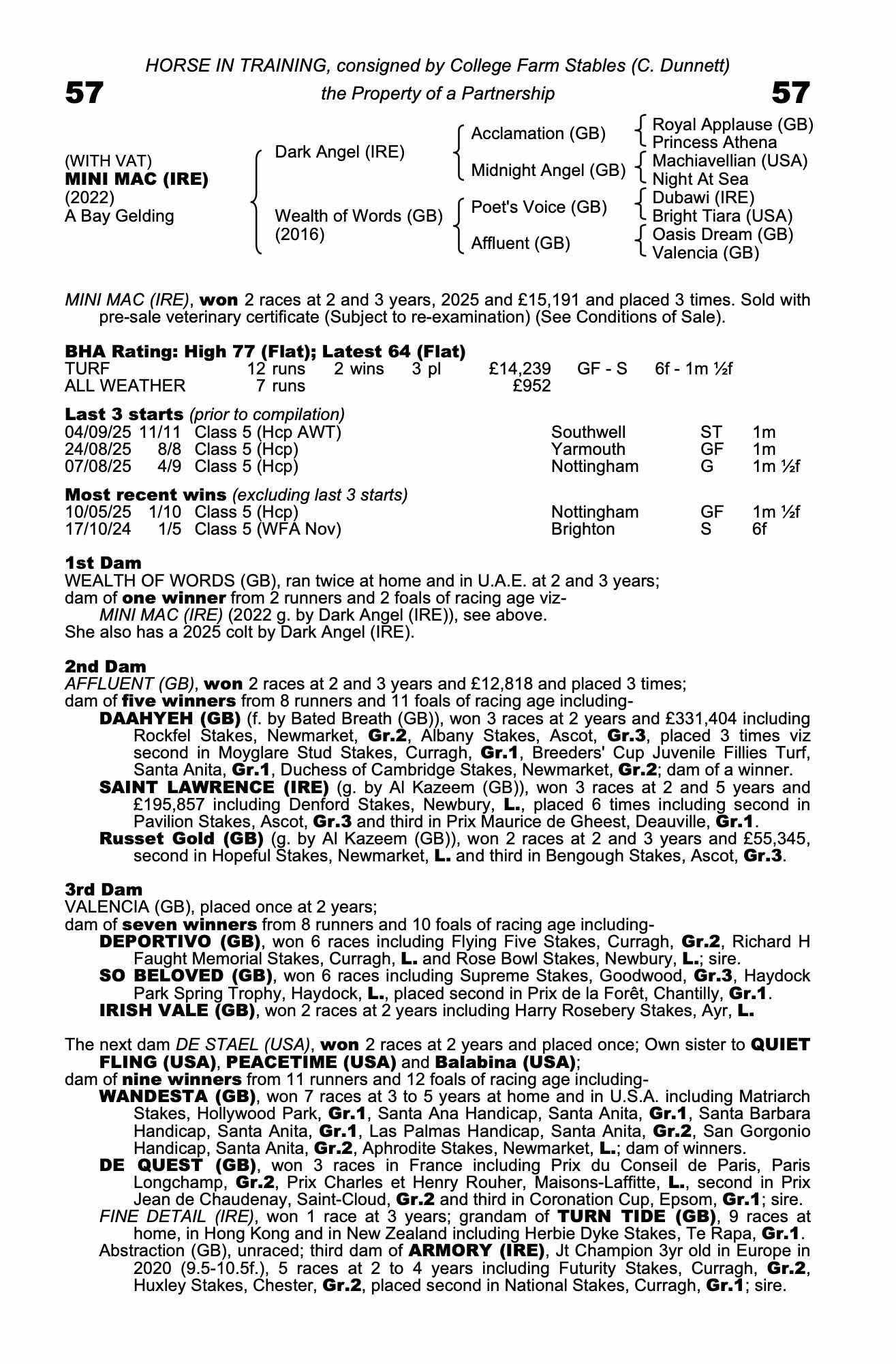 Vendor's Notes: Consistent performer , genuine and sound , no issues . Will strengthen up through the winter and be a great prospect for next season . Had a busy year and last 2 runs indicated he was as ready for a little holiday .