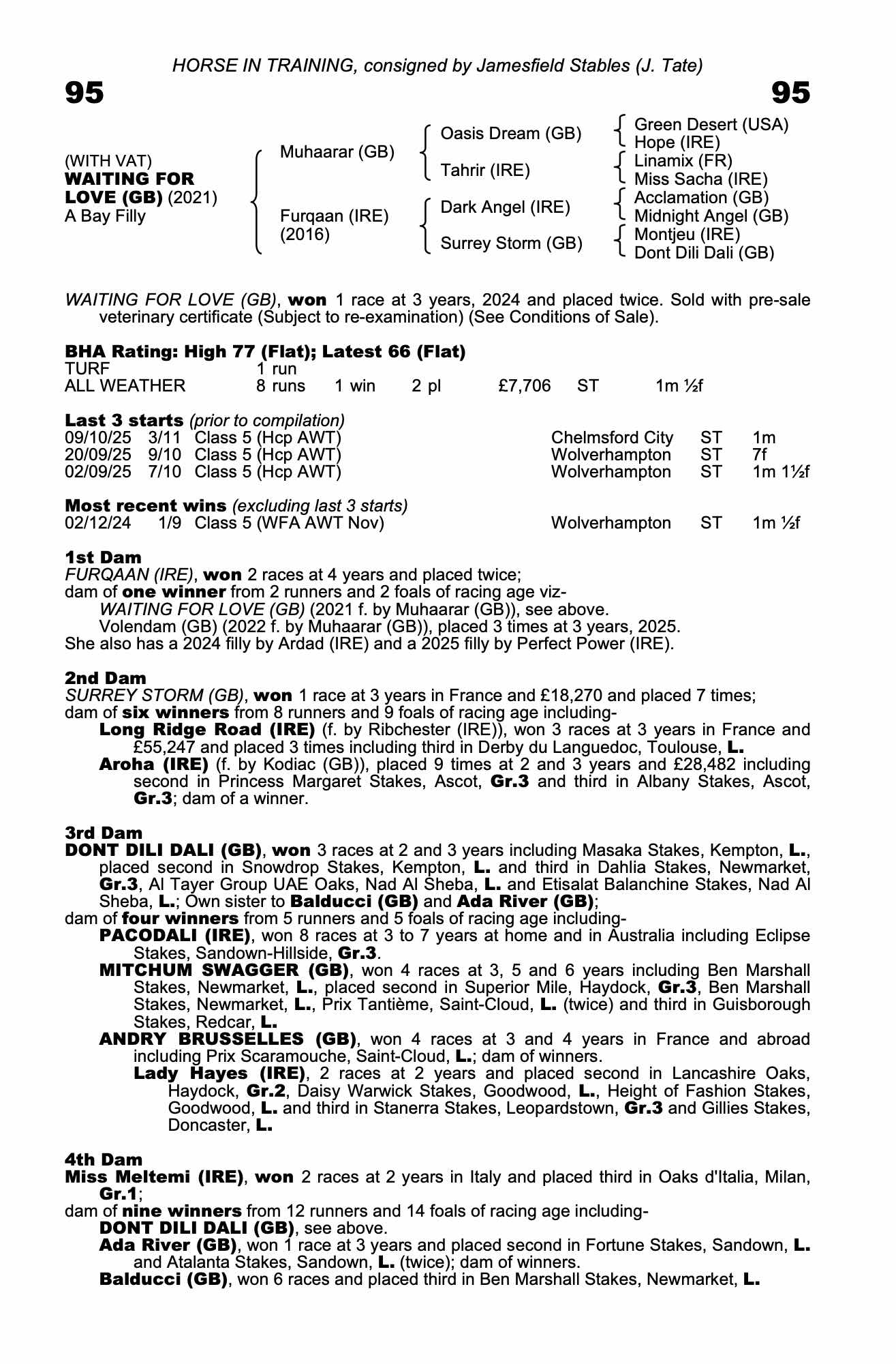 🇬🇧 Location: James Tate Racing, Jamesfield Place, Hamilton Road, Newmarket, CB8 7JQ, United Kingdom