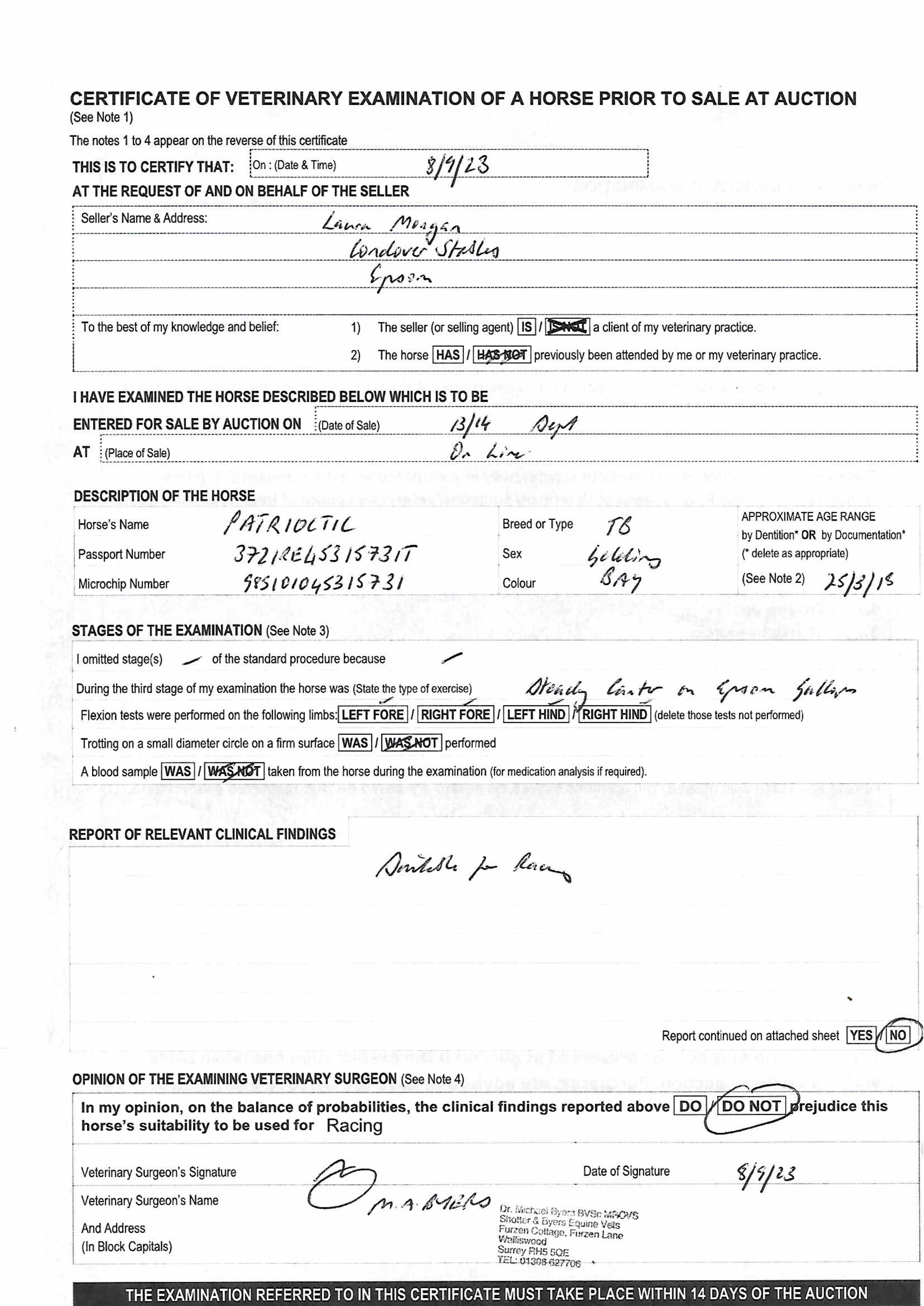 For time sensitive requests please call Tattersalls on +44(0)1638665931