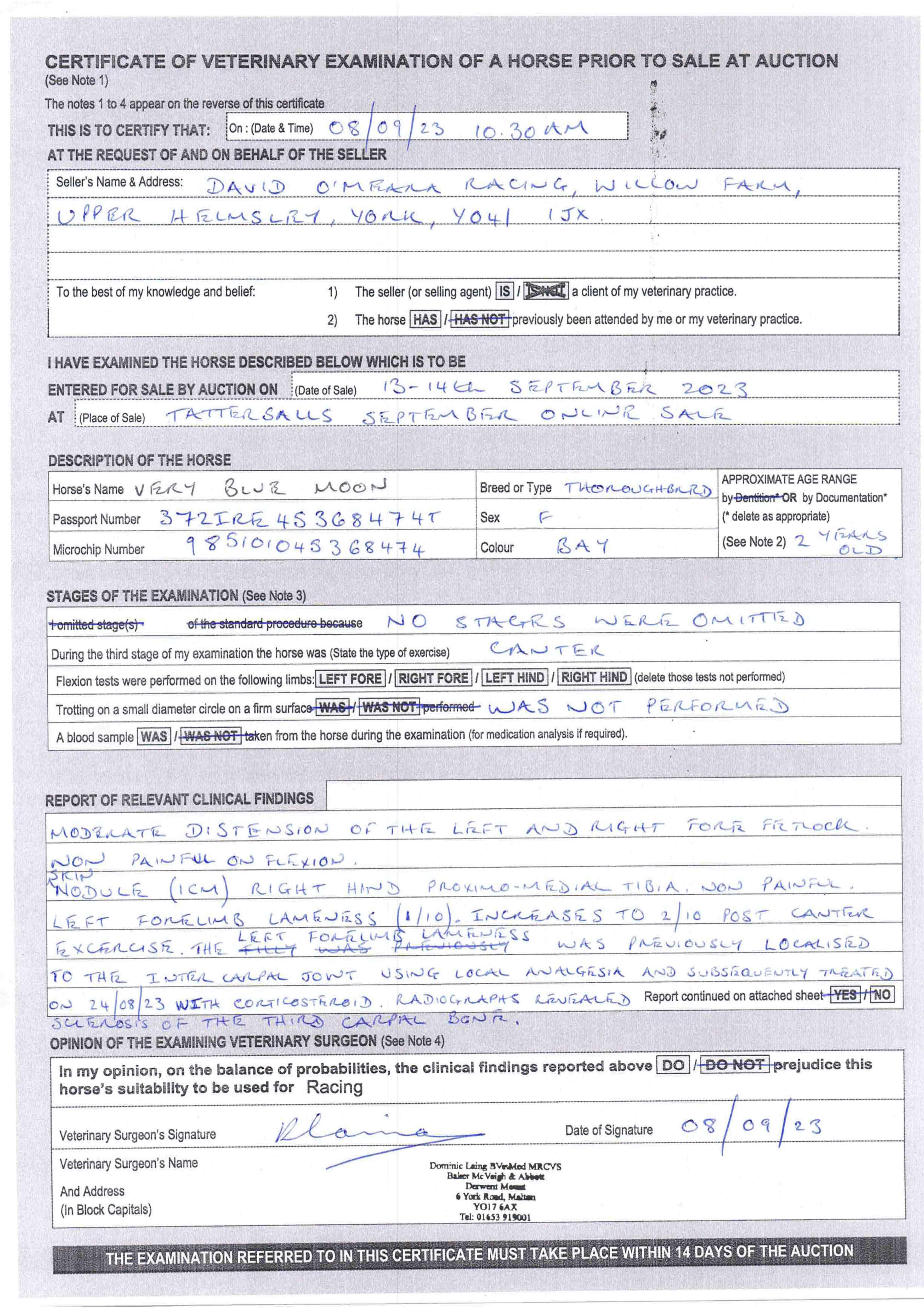 For time sensitive requests please call Tattersalls on +44(0)1638665931