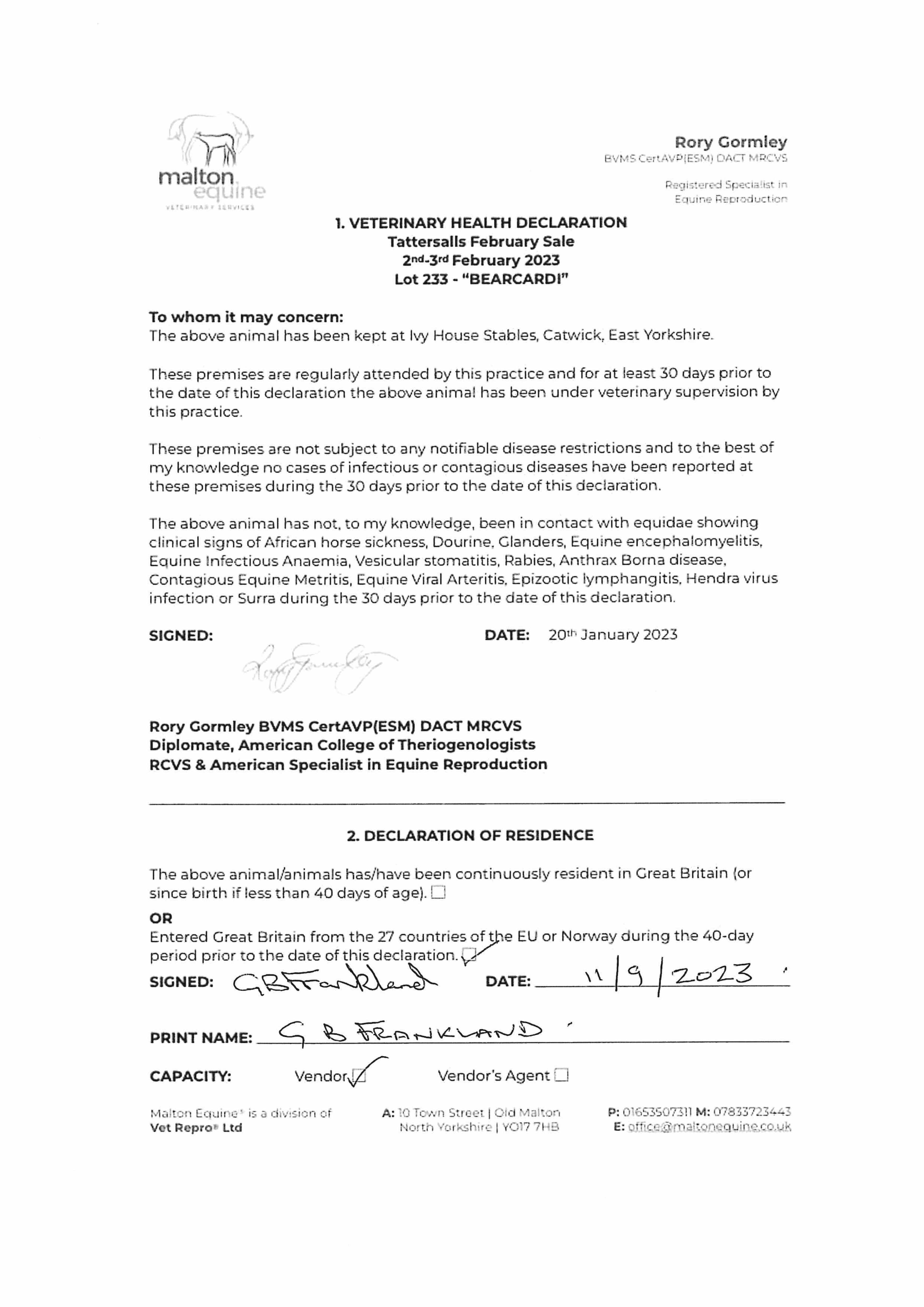 For time sensitive requests please call Tattersalls on +44(0)1638665931