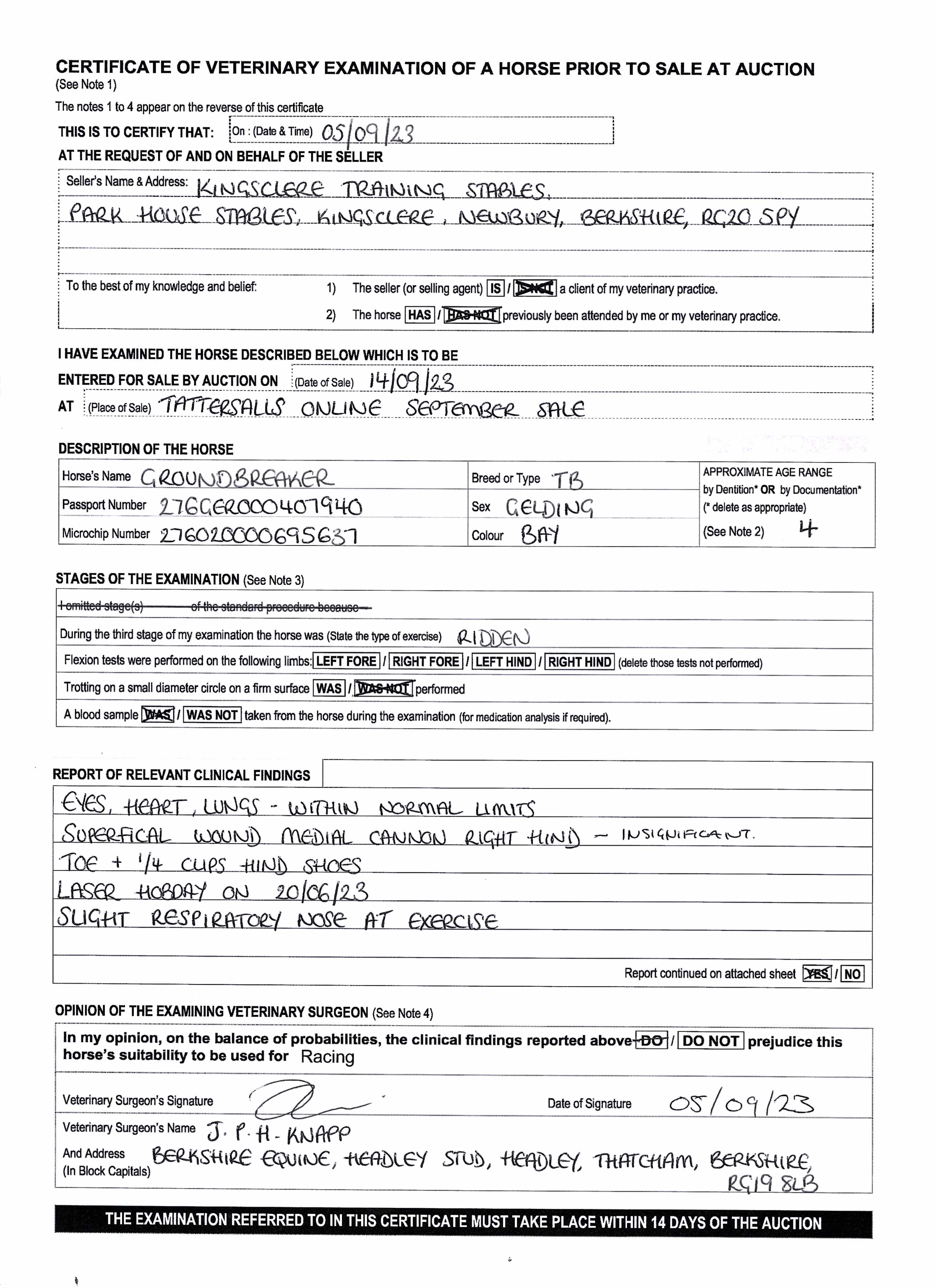 For time sensitive requests please call Tattersalls on +44(0)1638665931