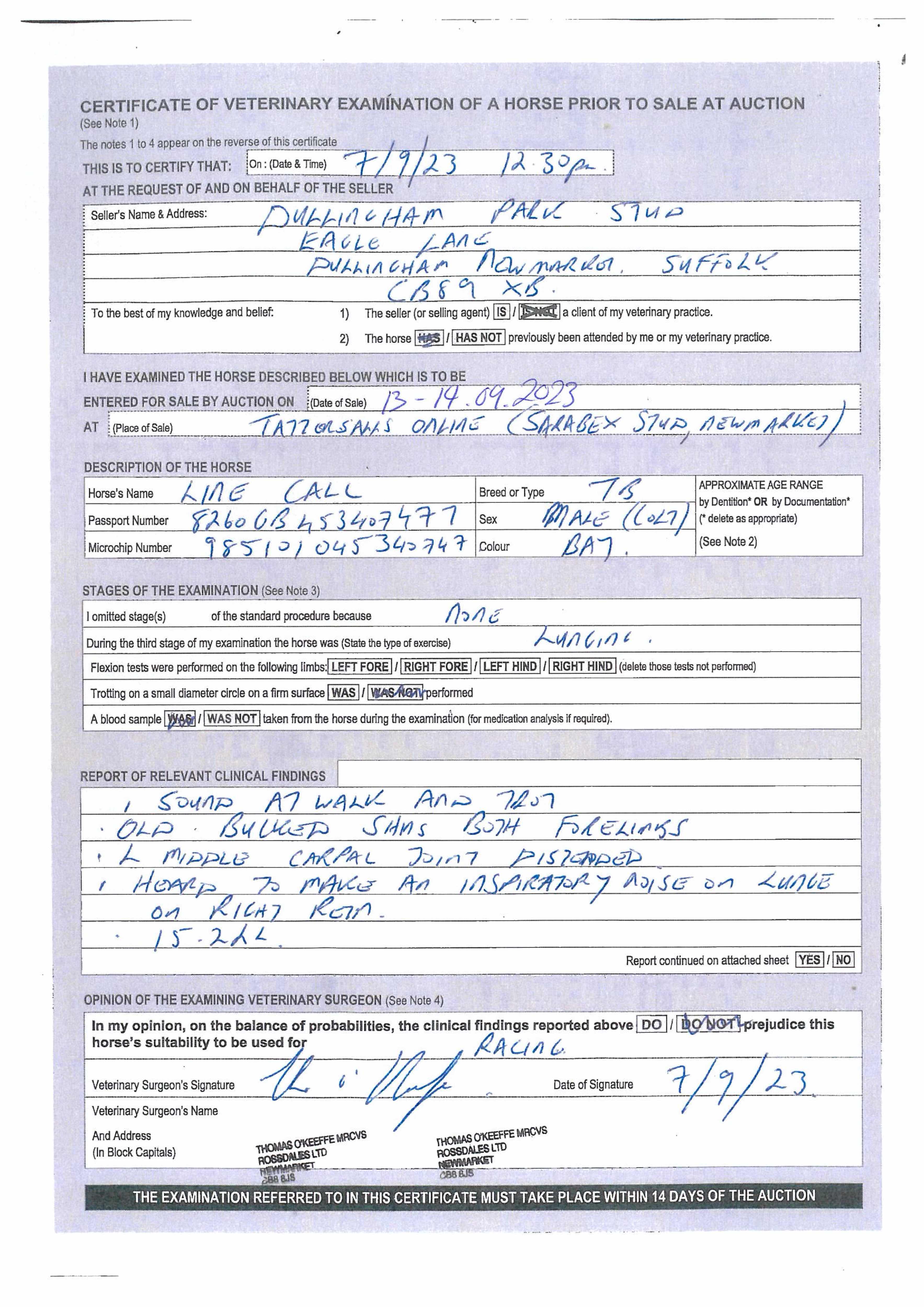 For time sensitive requests please call Tattersalls on +44(0)1638665931