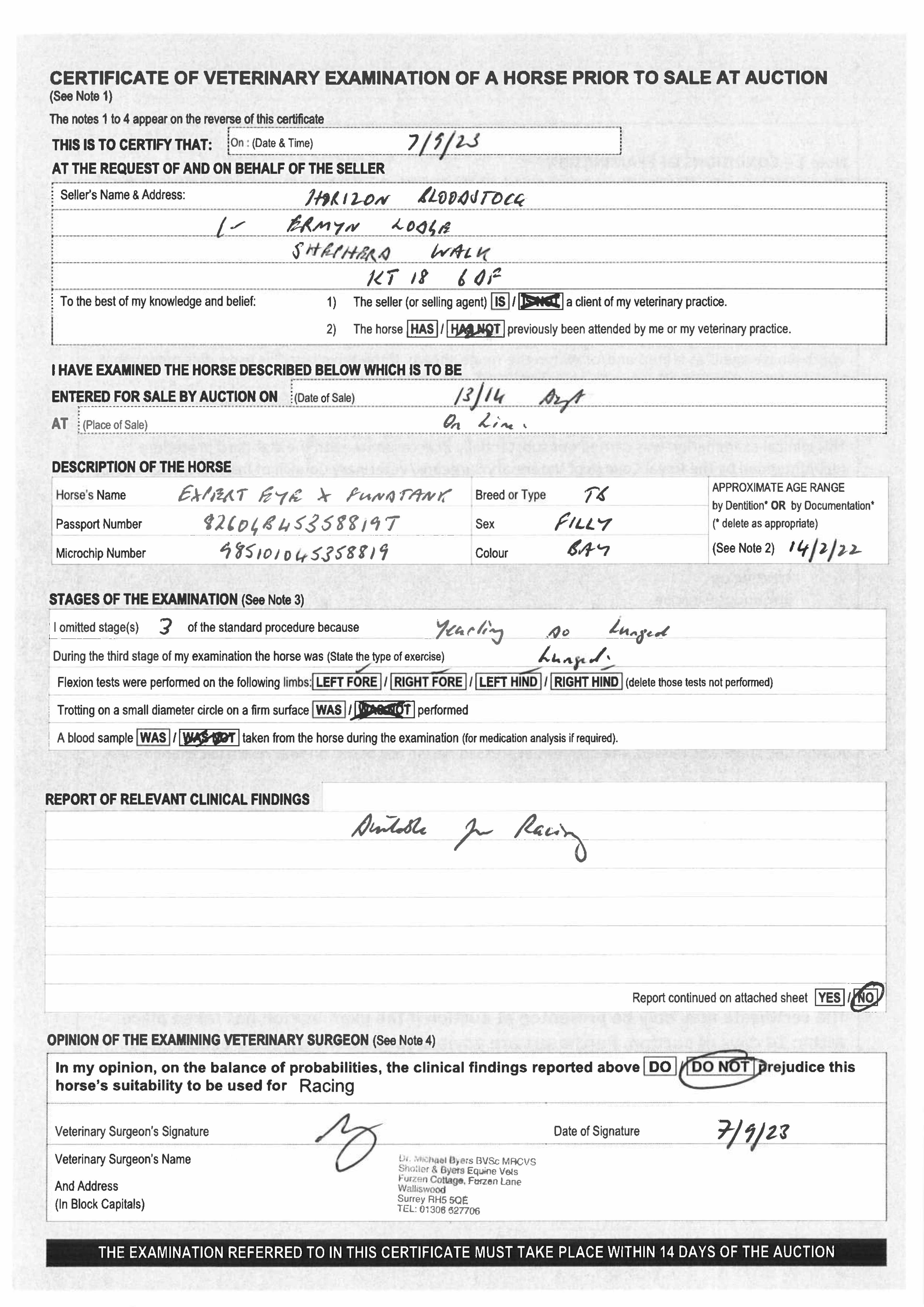 For time sensitive requests please call Tattersalls on +44(0)1638665931