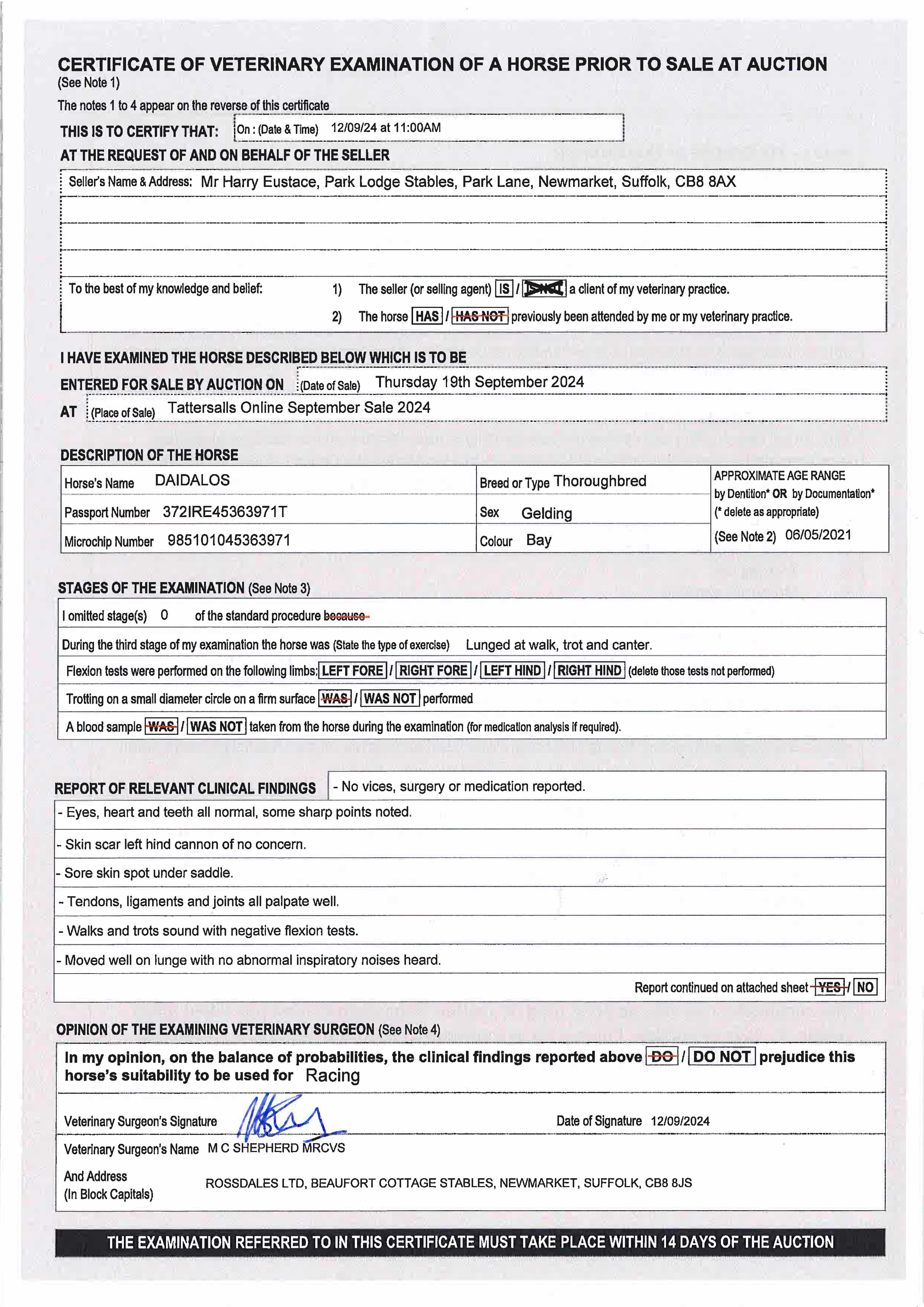 For time sensitive requests please call Tattersalls on +44(0)1638665931
