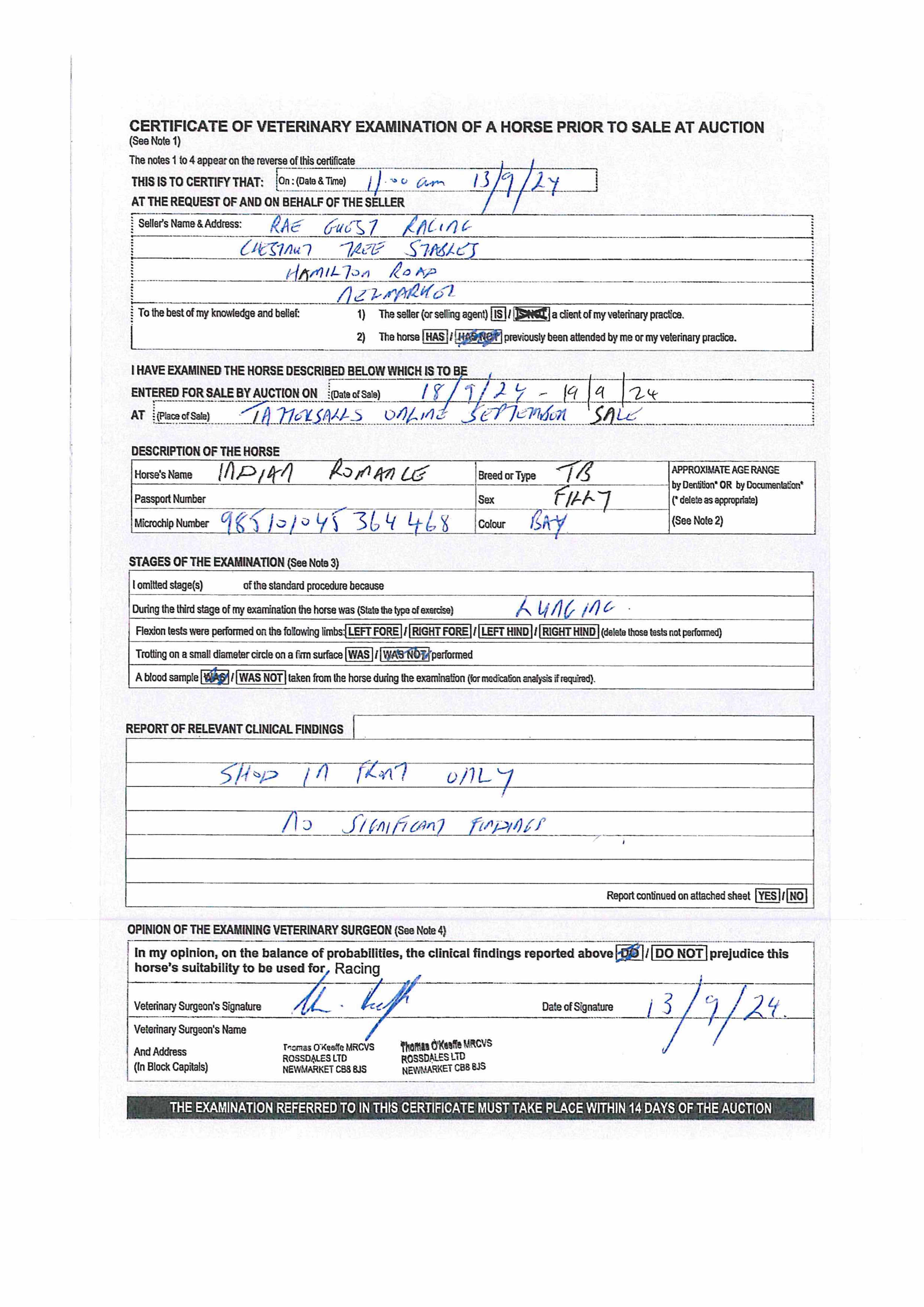 For time sensitive requests please call Tattersalls on +44(0)1638665931