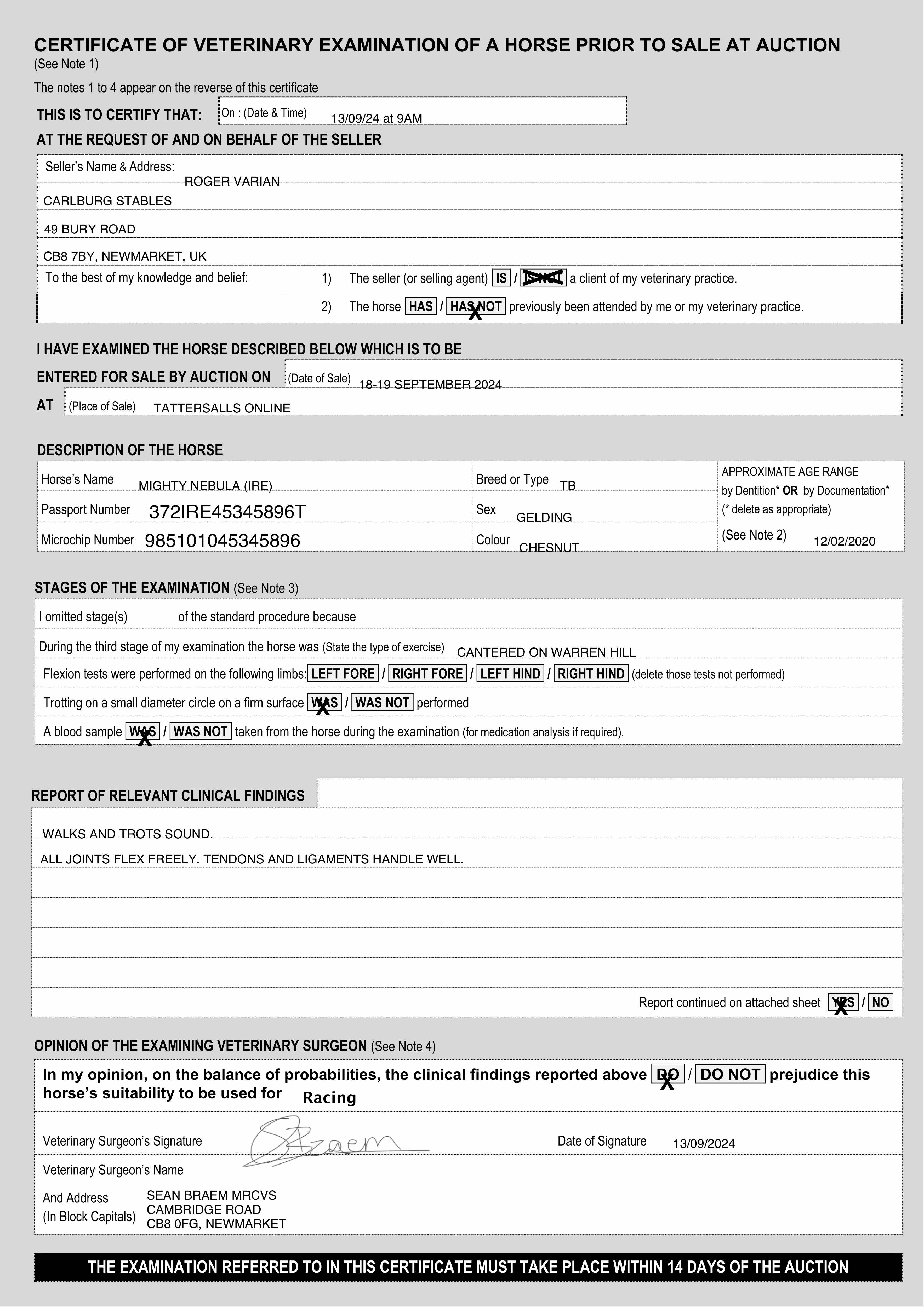 For time sensitive requests please call Tattersalls on +44(0)1638665931