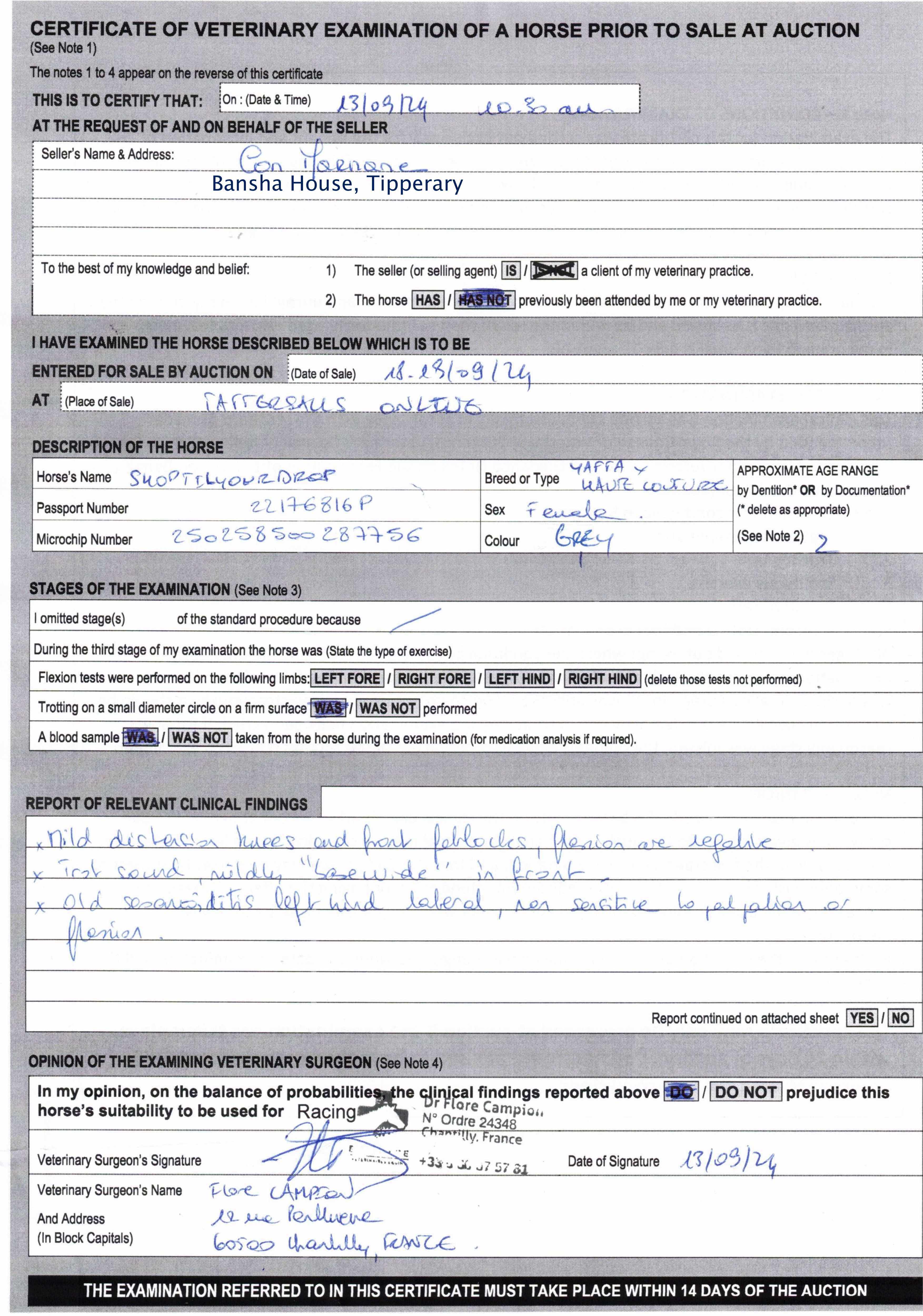 Consignor: Bansha House Stables