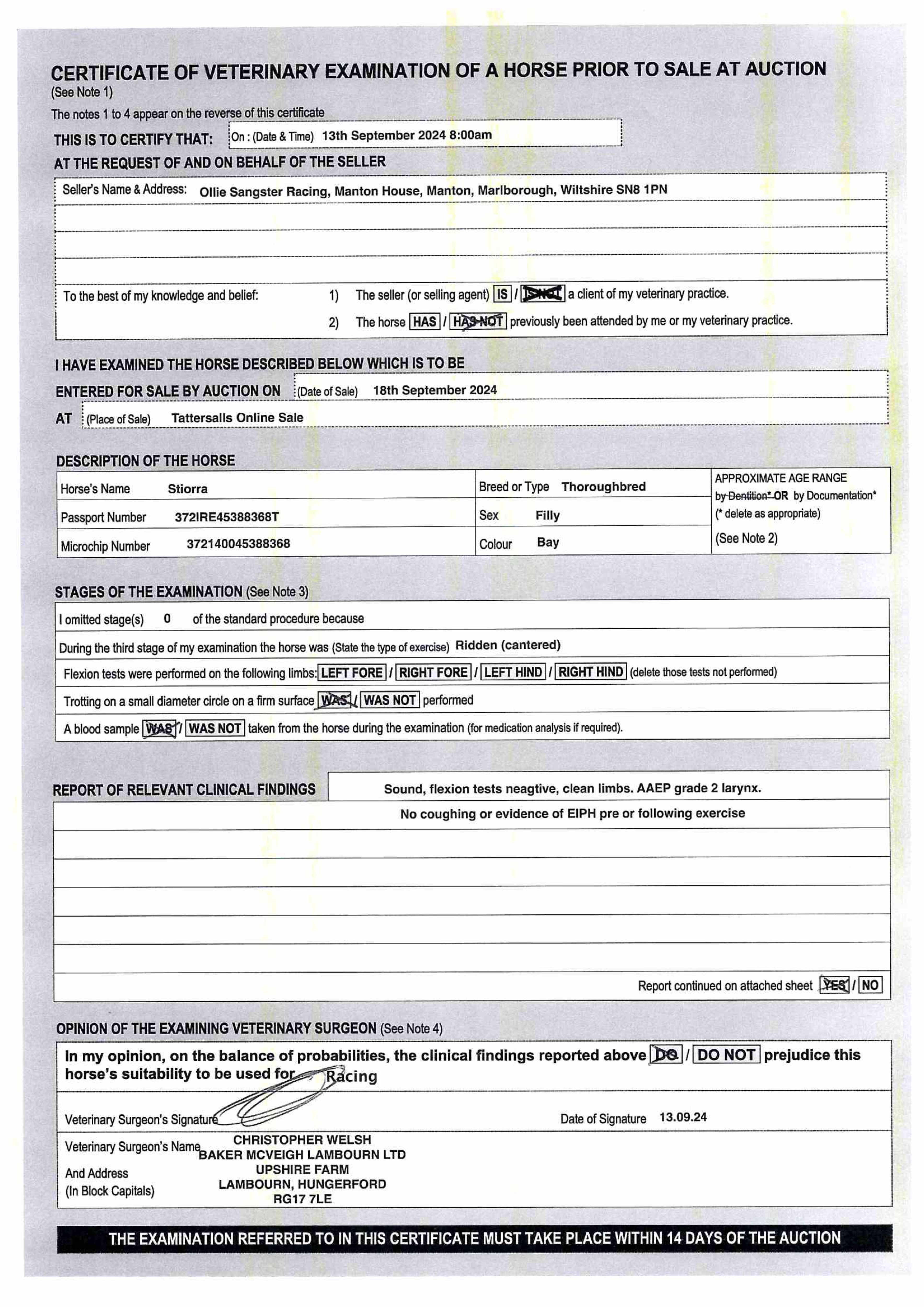 Vendor's Notes: Sound, clean winded straightforward filly.