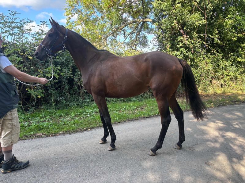Vendor's Notes:  Filly retired from racing unsound. Stifle injuries to both hind legs and fractured near fore fetlock. Not suitable for ridden work