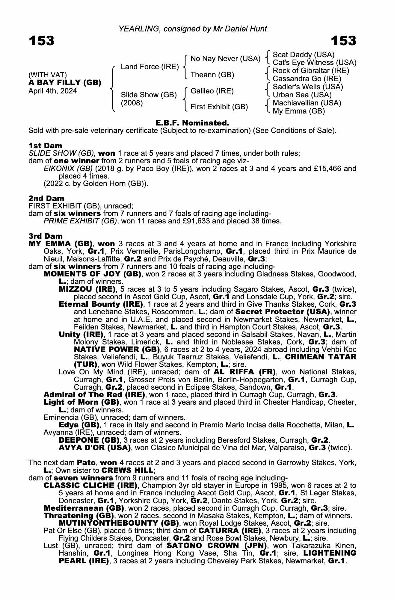 Tuesday 16 September:  Under 3rd dam, MOMENTS OF JOY (GB), dam of Love On My Mind (IRE): ; dam of AL RIFFA (FR), won Irish St Leger, Curragh, Gr.1.