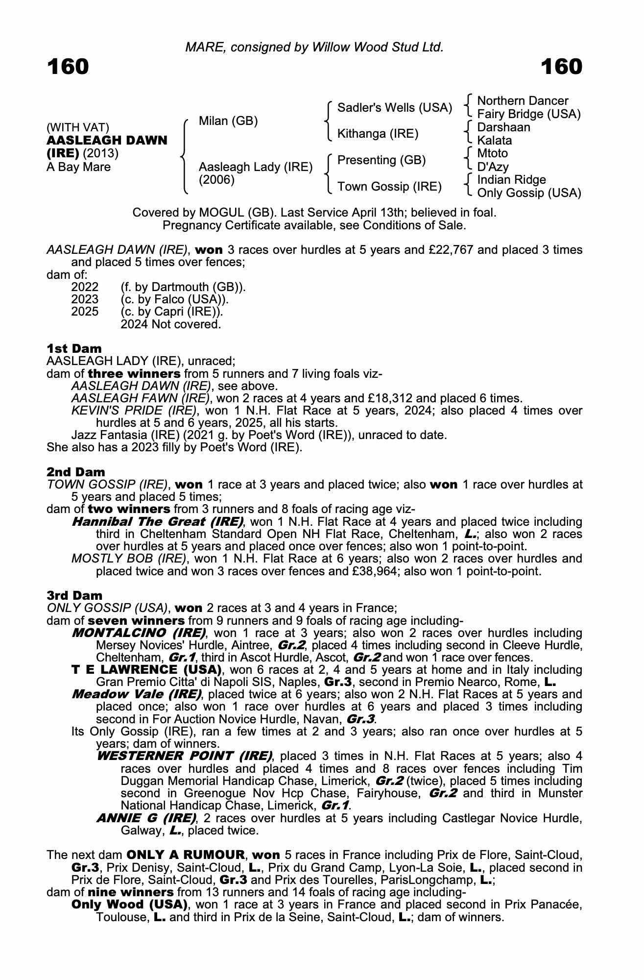 Vendor's Notes: A Bay mare 3x winner over hurdles. Colt foal by Capri being retained.