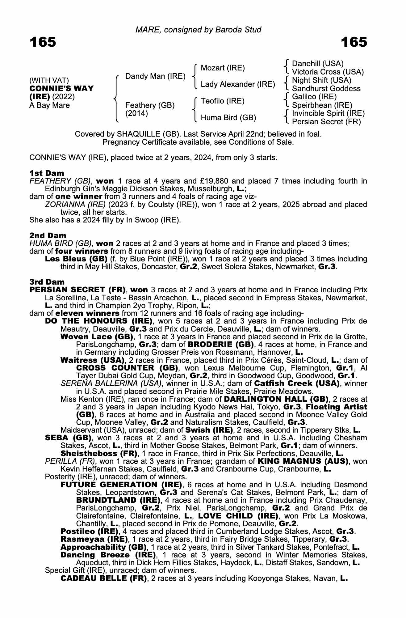 Vendor's Notes: CONNIE'S WAY was placed on debut over 6 furlongs as a two year old and is from the immediate family of Les Bleus.