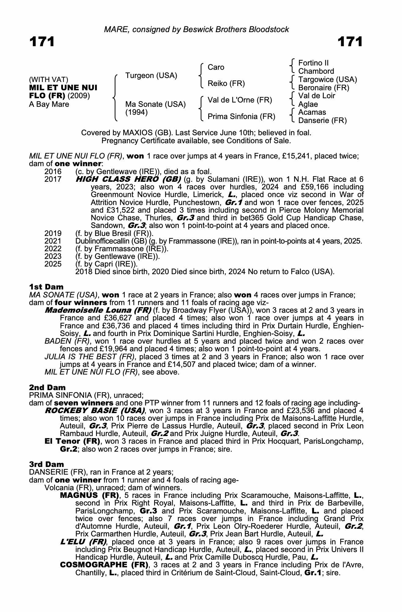 Vices/Declarations: Eligible for the HBLB/TBA Elite NH Mares’ Scheme. For more information, visit www.thetba.co.uk. No valid EIA Coggins received.