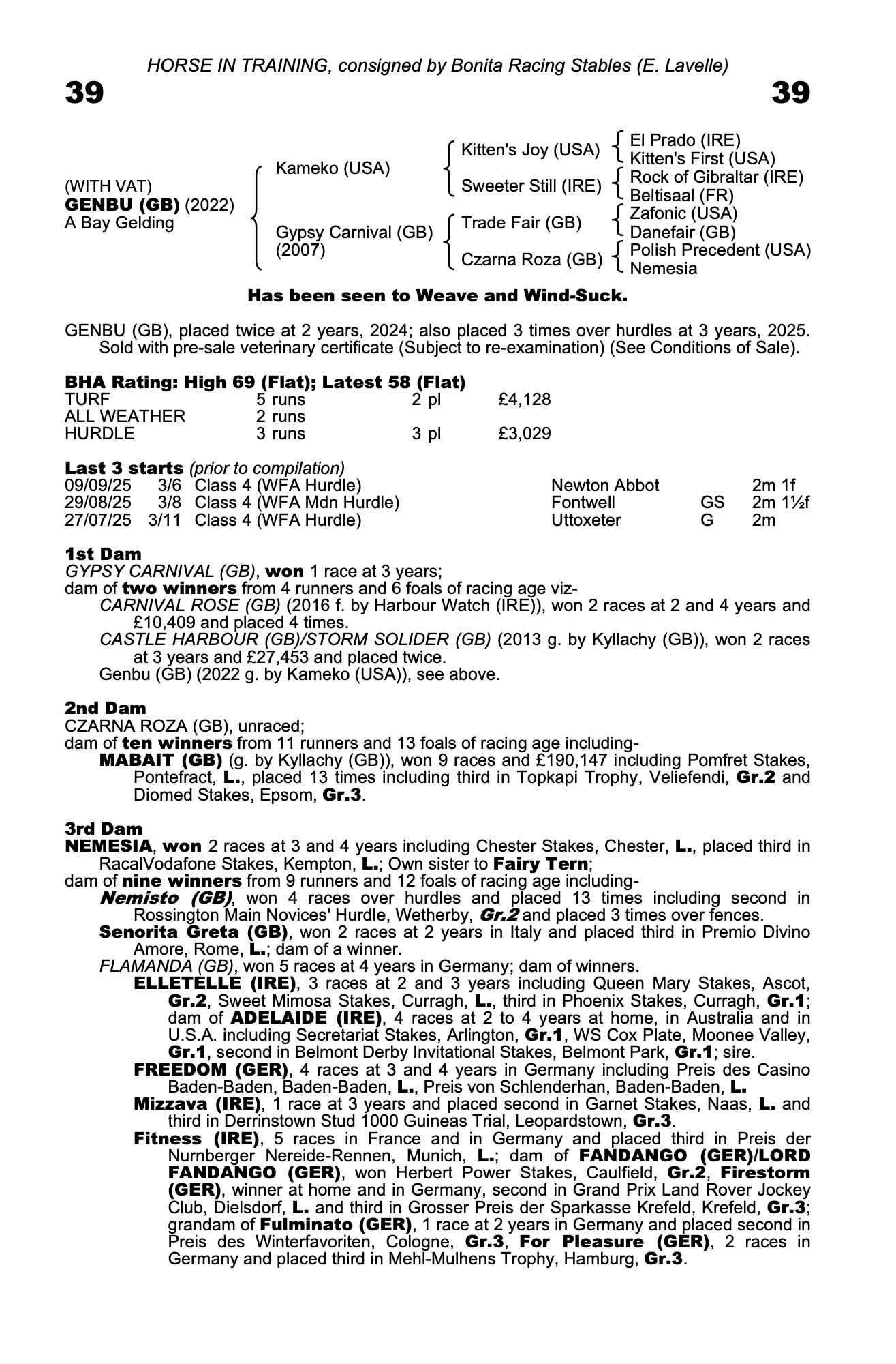 Vendor's Notes: Dual purpose horse. Good jumper. Now handicapped after 3 runs over hurdles.