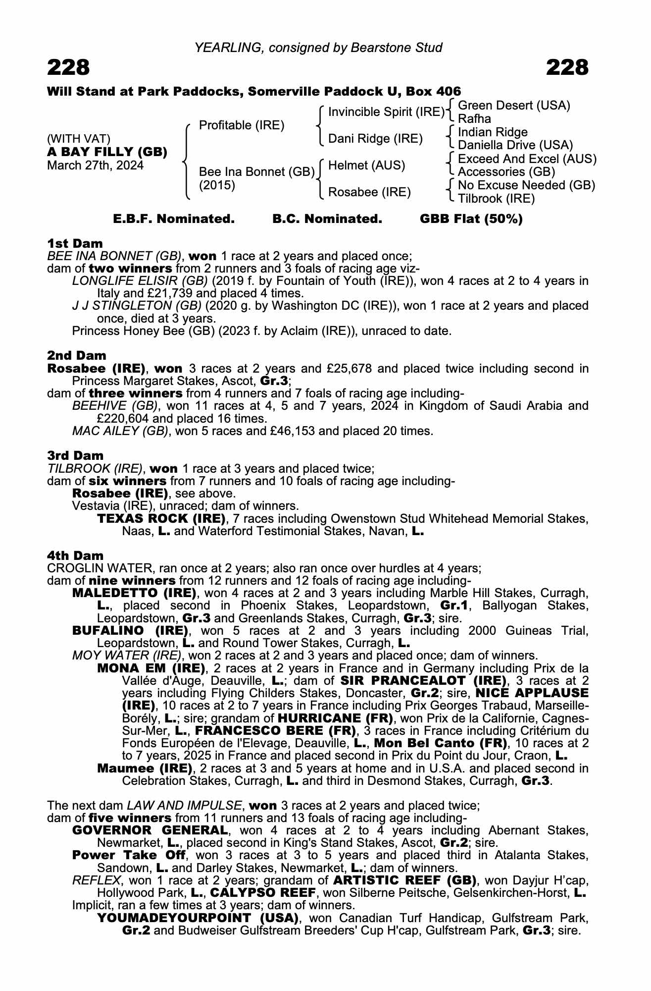 Somerville Yearling Sale 2024 lot 33 F. by Aclaim (IRE) 2023, Bearstone Stud=>Highflyer / Eve Johnson Houghton / N Bradley 23,000 gns